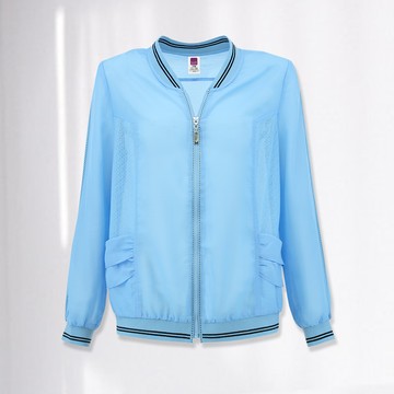 ILEY伊蕾 輕薄網紗透視拉鍊外套(藍色;M-XL)1231014016