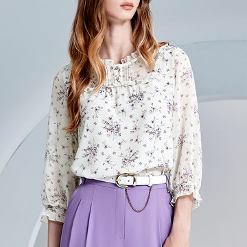 ILEY伊蕾 溫柔花束七分袖雪紡上衣(白色;M-XL)1233071405