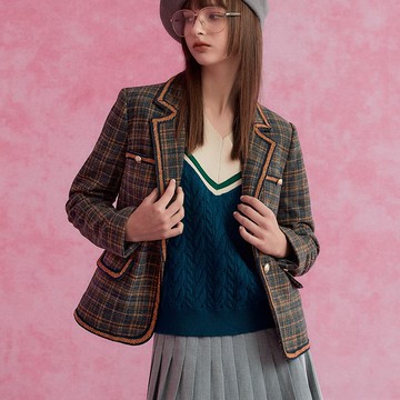 OUWEY歐薇 貴族學院格紋西裝外套(咖色;S-L)3234394701