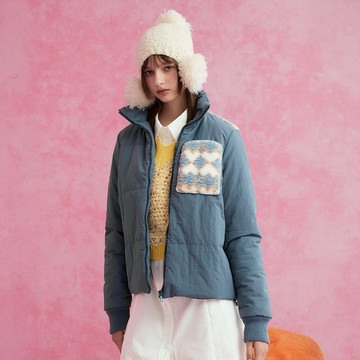 OUWEY歐薇 撞色毛毛菱格鋪棉立領外套(藍色;S-L)3234134202