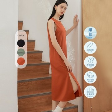 懶人不易皺.雙肩帶美背傘襬長洋裝
