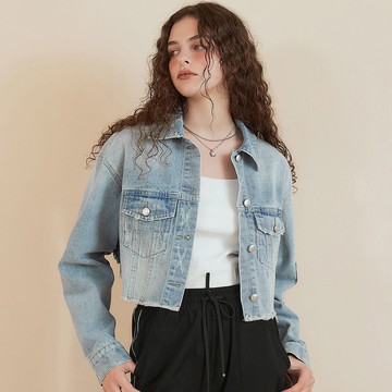 造型口袋刷色極短版牛仔外套 JN2061922【現貨】