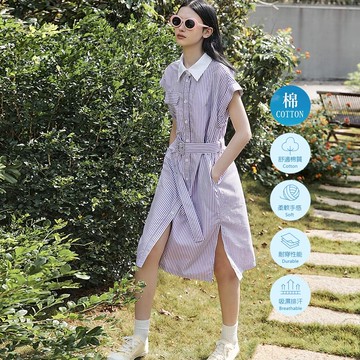 女裝藍白色條子高質布料 腰索繩 連衣裙 連身裙