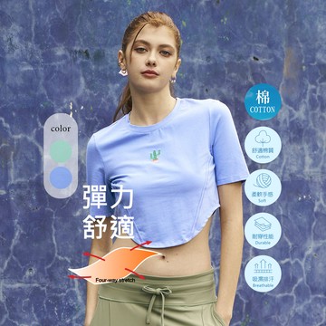 快乾圓領純色布標落肩短袖上衣