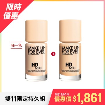 【雙11限定持久組】HD SKIN 粉無痕持久粉底液 30ml+HD SKIN 粉無痕持久粉底液 30ml - MAKE UP FOR EVER