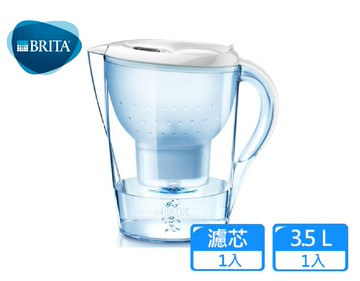 【BRITA】馬利拉濾水壺Marella XL 3.5L(白色)+去水垢濾芯4入+全效濾芯1入
