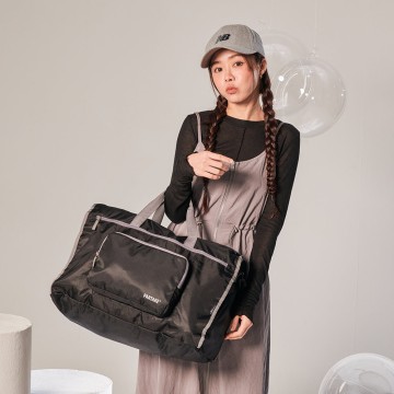 日本 3Coins 升級款折疊旅行袋-灰 約高度35/45寬度40cm (JN5002)