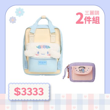 【DOUGHNUT】《三麗鷗 兩件組》小後背包 (米色) + 零錢包 (紫藤)