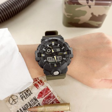 G-SHOCK CASIO / GA-710TU-1A3 / 卡西歐 軍事風格 雙顯 大錶殼 防水200米 橡膠手錶 黑x橄欖綠 53mm