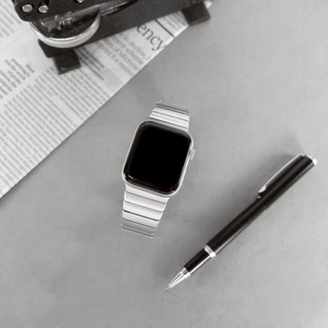 Apple Watch 全系列通用錶帶 蘋果手錶替用錶帶 竹節 蝴蝶扣 不鏽鋼錶帶 銀色 #858-043-SR