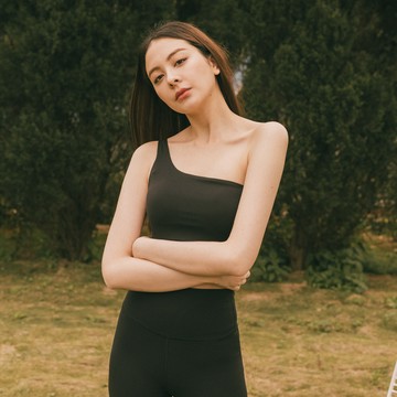 Athleisure.U領寬肩帶中度支撐運動內衣(黑色)