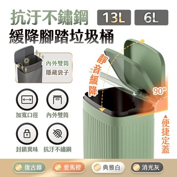 TRENY 加厚緩降不鏽鋼垃圾桶8L 霧黑_廠商直送