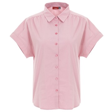 彈力抽縐短袖襯衫-雪松粉(女263234850)