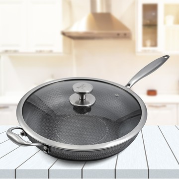 【ENNE】316不鏽鋼蜂巢式複合金不沾炒鍋32公分附玻璃蓋-電磁爐適用(不鏽鋼鍋/炒鍋/鍋子)(K0118)