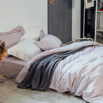 LAMINA 純色-灰芋紫 精梳棉四件式被套床包組(雙人)