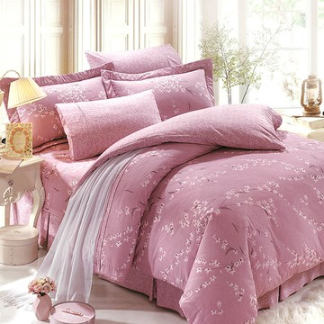 櫻花粉60支柔軟親膚純棉床包床單枕頭套被套雙人床四件套