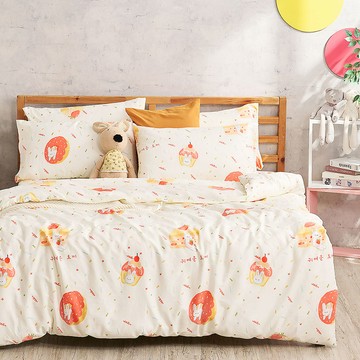 【FITNESS】精梳棉加大四件式被套床包組- 萌玩樂園(粉)
