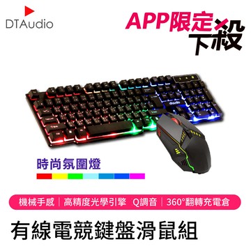【APP獨享】DTA-G200 有線電競鍵盤滑鼠組|機械手感、RGB燈效