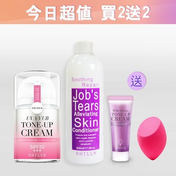 【夏日冰白兼防曬💧買2送2】SHILLS舒兒絲 仙氣濾鏡UV裸光素顏霜(小仙女)+薏仁舒緩淨化保濕化妝水+送隨身版抗UV美白濾鏡素顏霜-小蒼蘭(15ml)+美妝蛋(顏色隨機)