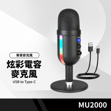 MU2000 炫彩電容麥克風 心型指向 智能降噪 耳機實時監聽 適用直播錄音/會議視訊/線上教學 專業麥克風 高兼容