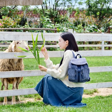 丹寧老花翻蓋雙肩後背包-ANTO S