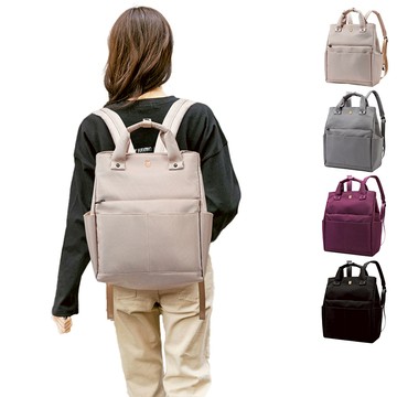 日本 aroco - 10口袋輕量尼龍簡約後背包/媽媽包-素面-灰棕