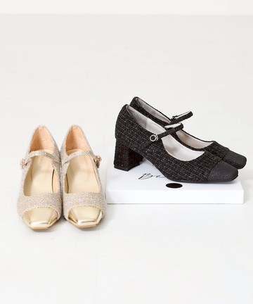 法式浪漫珍珠瑪莉珍復古跟鞋 黑 GC23BK