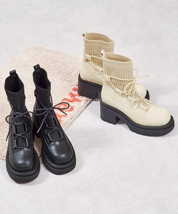 MIT雜誌款素面拚色皮革側拉鍊繫帶短靴.白鳥麗子
