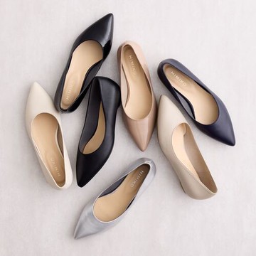 Ann’S頂級小羊皮拼接V口低跟尖頭鞋-粉