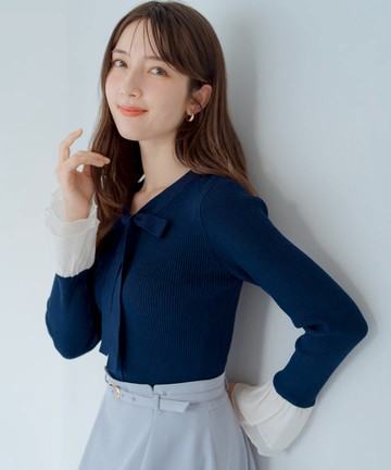 蕾絲荷葉邊蝴蝶結針織毛衣(MM518304)