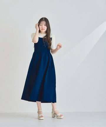 日本 Classical Elf - 成熟可愛感後綁帶吊帶洋裝-紋理-黑