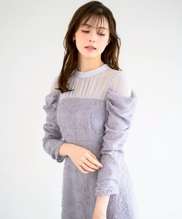 〚Green Parks〛褶皺拼接下擺法式袖洋裝