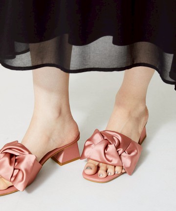 光澤緞面絲帶穆勒涼鞋 (41227)