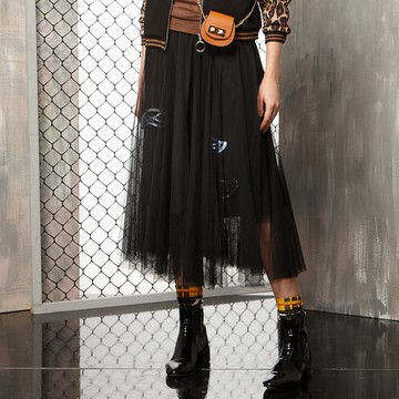 一片式半身網紗綁帶花朵刺繡圍裙 多層次穿搭