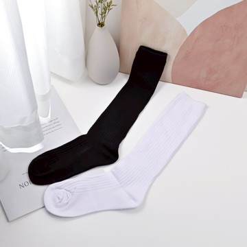 及膝襪子 素色日系學院風格小腿襪 黑色白色jk襪子 百搭堆堆襪