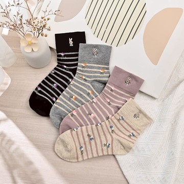 比得兔繡花寬口女襪-桔梗花-多色任選