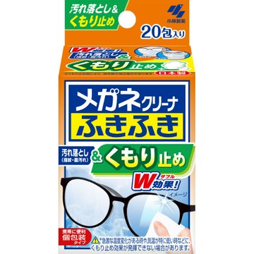 (2盒40包超值組)日本Kobayashi小林製藥-雙效去污速乾拋棄式眼鏡擦拭清潔濕巾20包/盒-防霧綠標(便攜獨立包裝擦拭布,鏡片起霧防護拭鏡紙)