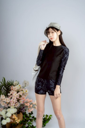 加購優惠(L) 質感透膚黑色長袖上衣