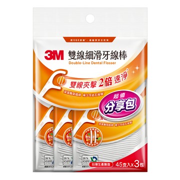 3M雙線細滑牙線棒分享包45支*3入