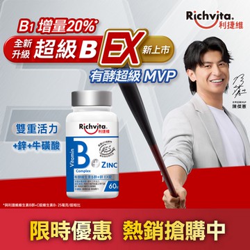 Richvita利捷維 有酵維生素B群+鋅、B群+鐵、B群+C、超級B (任選2入組)