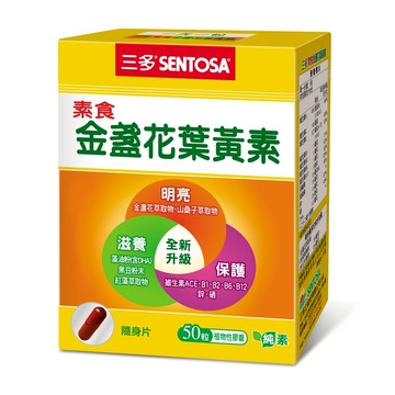 SENTOSA 三多 素食金盞花葉黃素植物性膠囊 50顆 含維生素A 維生素C 維生素E 維生素B1 維生素B2 維生素B6 維生素B12 0.44g 1盒