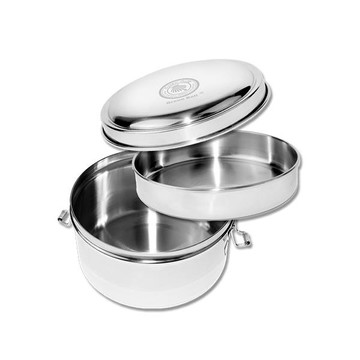 SILWA 西華 雙層圓形便當盒 14cm 不鏽鋼 銀色 1個