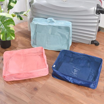 旅行收納袋8件組 大號(40 x 30 x 12cm) + 中號(30 x 28 x 12cm) + 小號(30 x 20 x 12cm) + 束口袋(36 x 27cm) + 內衣袋(28 x 20 x 12cm) + 平口袋(27 x 12cm) + 鞋袋(36 x 21c