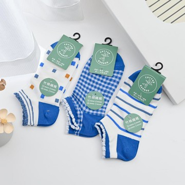 靦腆微笑狗船型襪3雙入-藍+白+白