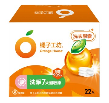 【Orange house 橘子工坊】天然制菌去味洗衣膠囊(20gx22顆)X6盒