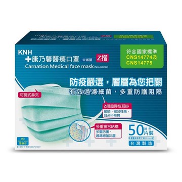 康乃馨醫療口罩Z摺50片盒裝-粉綠