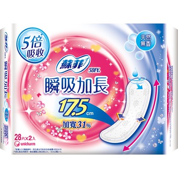 蘇菲瞬吸加長護墊28片2入花香17.5cm