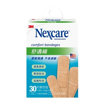 3M Nexcare 舒適繃綜合包 12片(1.5 x 5.7cm) + 12片(1.9 x 7.6cm) + 6片(2.5 x 7.6cm) 30片 2盒