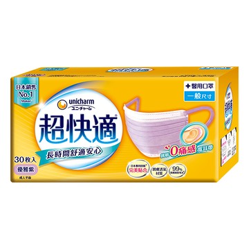超快適 長時間舒適安心醫用口罩 M 30片 優雅紫 1盒