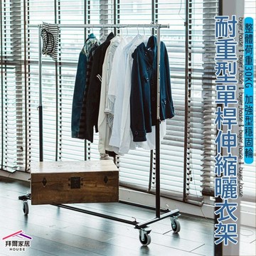 [拜爾家居]耐重型單桿伸縮曬衣架 MIT台灣製造 二活二剎車 工業輪 曬衣 晾衣架 衣架 吊衣架 掛衣架 diy衣架 (免運)
